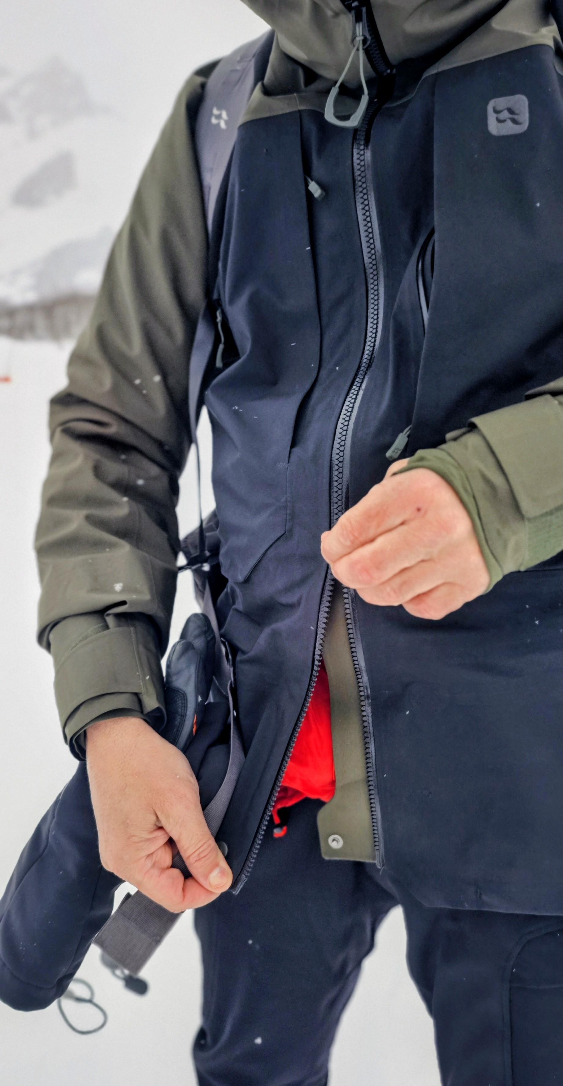 También me han encantado los bolsillos. Cuenta con dos en el pecho muy bien dimensionados y de fácil acceso, aparte de los laterales, la manga y el interior. Además están todos muy bien pensados y nos facilitan la vida a la hora de colocar el forfait en la manga, guardar una cámara, el móvil o tener a mano unos guantes o un mapa.