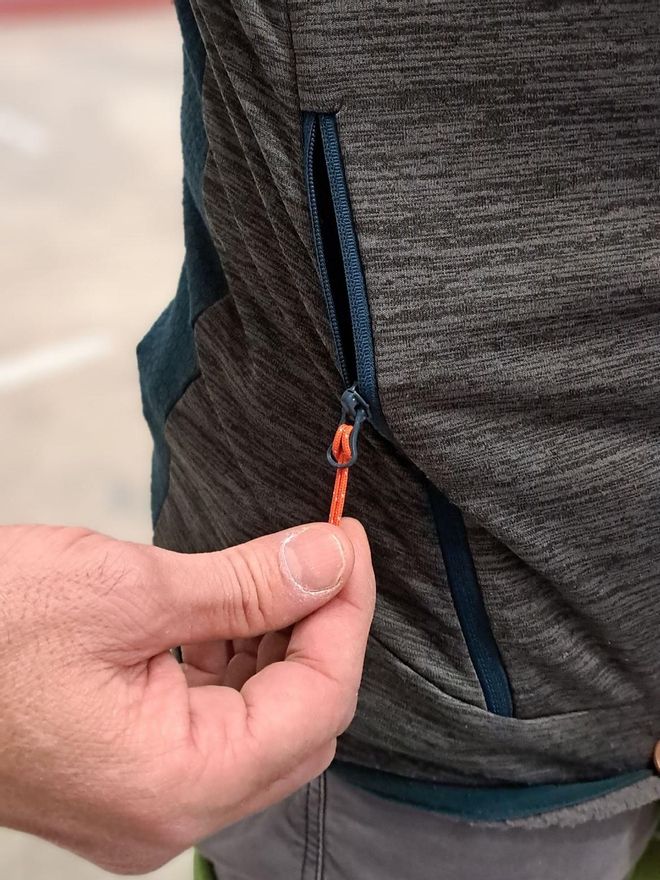 Estamos hablando de una prenda entorno a los 400 gramos en talla L que cuenta con dos bolsillos laterales grandes y bien dimensionados donde podremos meter hasta unos guantes o un GPS y otro más en el pecho, algo más pequeño, en el que caben las tarjetas, el fortfait o la cartera. Todos han sido sellados con cremalleras finas, pero de buena calidad, igual que la central de la chaqueta que cierra el conjunto con mucha efectividad y nos da confianza de uso.