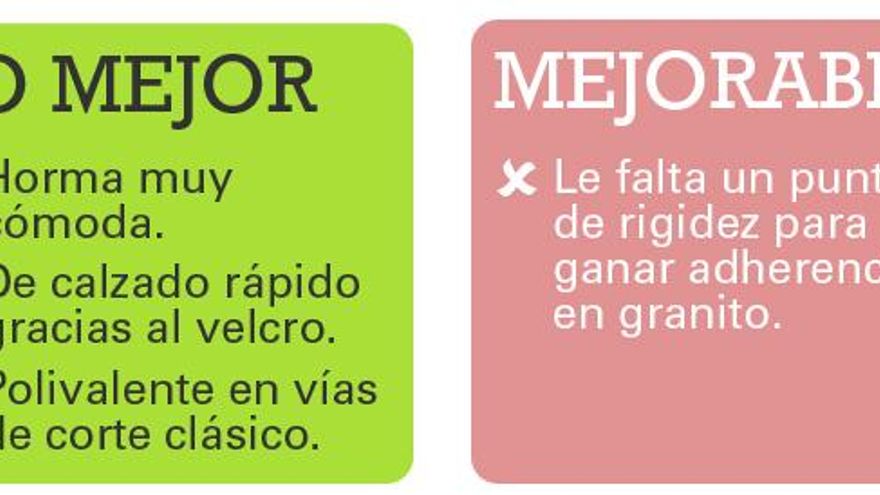 Quizás, como apunte a mejorar en el futuro, se agradecería un poco más de rigidez, lo que aumentaría la adherencia en granito, aunque también es cierto que no se puede pedir todo a un mismo par de pies de gato.