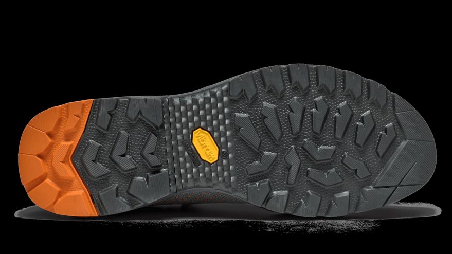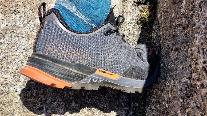 La suela es todo un conjunto de tecnología. Semirrígida, pero sin ser incómoda, consta de un agarre de arco de goma con dientes de Vibram en la zona anterior al talón para un mejor agarre en zonas resbaladizas de crestas o los peldaños de vías ferratas. Probadas en zonas arcillosas húmedas me ha sorprendido las poquísimas derrapadas.