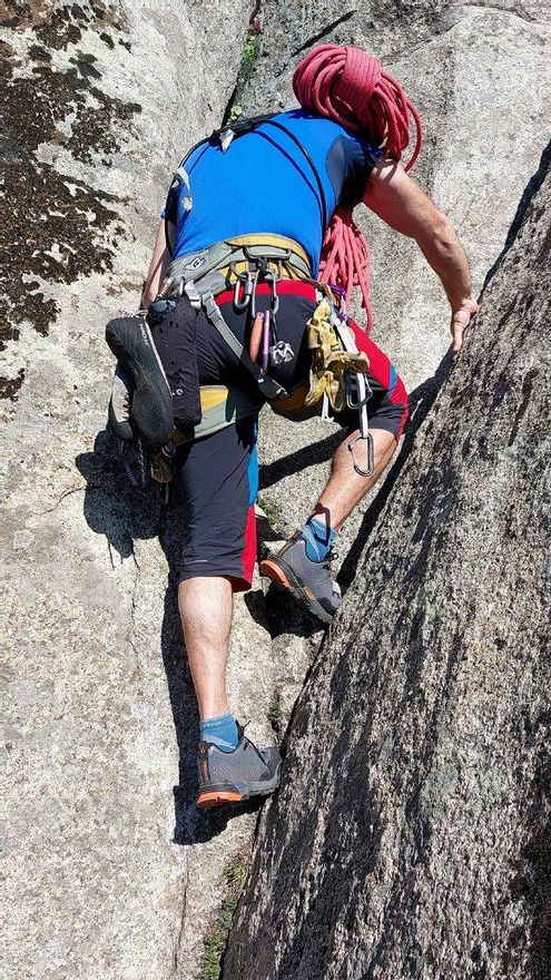Zapato de aproximación técnico muy cómodo, robusto y con pinta de duradero con el cual, gracias a su talón acolchado, parece que vas “flotando” sobre las piedras al tiempo que otorga una gran precisión en los canteos, aproximaciones y vías “asequibles” de escalada.