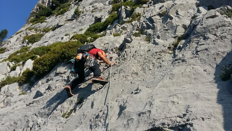 Calzada con la Vibram Gravity, los pasos de placa hasta Vº en caliza están garantizados, damos fe de ello.
