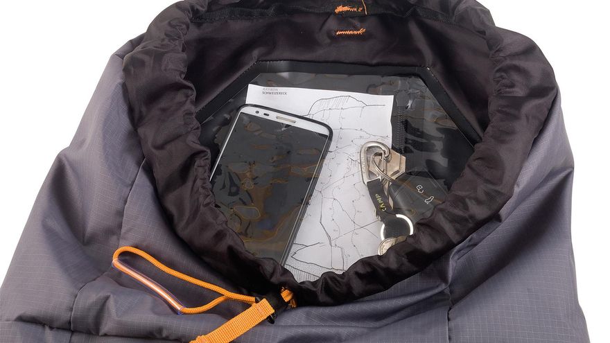 Dispone de un bolsillo interior en la parte superior estanco y transparente sensible al tacto para poder llevar elementos electrónicos manejables (GPS, teléfono móvil, etc.) sin tener que sacarlos. Otra gran ventaja es que nos ofrece la posibilidad de llevar un plano.