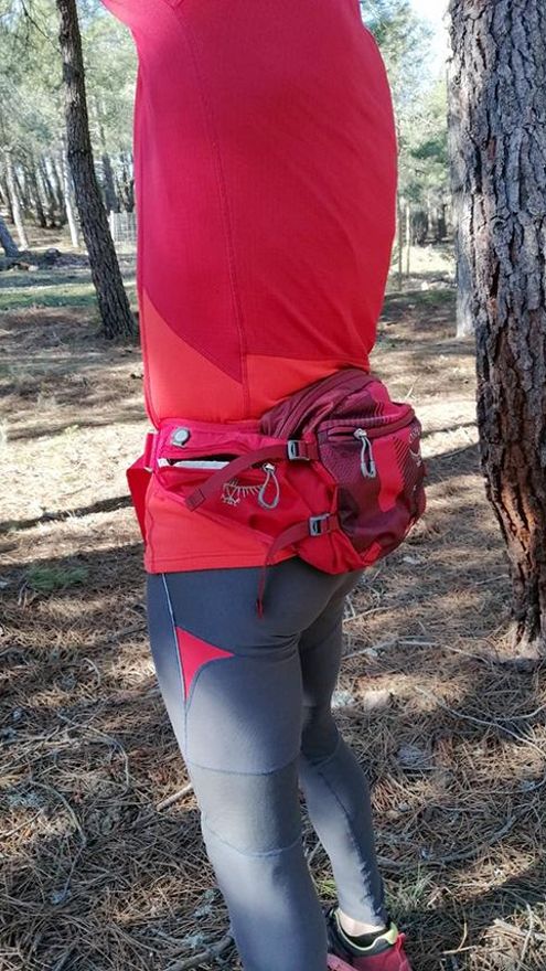 Una vez que la sitúas en la cadera ves que ninguna de las correas está sobredimensionada de forma que moleste. Además, están perfectamente articuladas de tal forma que no incomodan, ni siquiera con una camiseta como única capa. La riñonera apoya perfectamente en la zona lumbar adaptándose a nuestra silueta con mucha comodidad.
