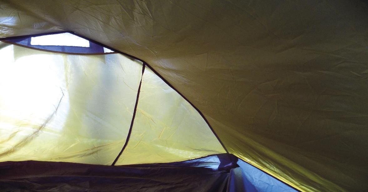 Su columna de agua para el techo es de 5.000mm, siendo de 6.000mm para el suelo, gracias a su tejido de poliéster 70 denier. Como vemos son cifras verdaderamente destacables para precipitaciones en forma de lluvia, ya que no debemos de olvidar que una mayor columna de resistencia al agua implica más condensación interior y menos transpirabilidad. Recordemos que estas cifras se obtienen tras pruebas de laboratorio sobre los tejidos sometidos a la presión de un líquido, a lo que deberíamos añadir el tiempo de exposición a ese líquido, así como el posible desgaste del tejido debido al uso. También debemos apuntar que sus costuras son estancas y las cremalleras cuentan con tiradores en los cierres lo que facilita su manipulación con guantes.