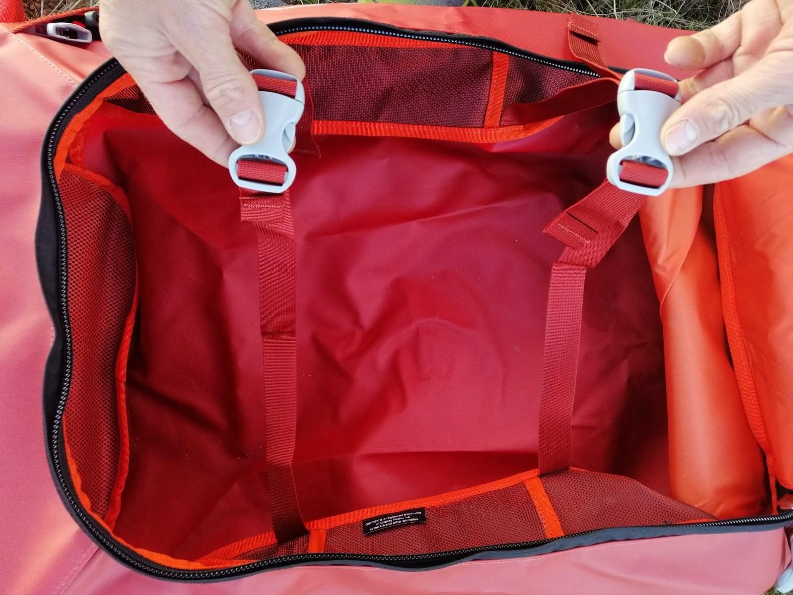 La Osprey Transporter 95 cuenta también con un bolsillo externo en el extremo, muy amplio, por cierto, otro bolsillo debajo de la tapa, y varios más interiores además de unas correas de compresión internas que permiten tener el contenido organizado. El acceso al interior es comodísimo ya que la apertura de la tapa de la bolsa es muy amplia.