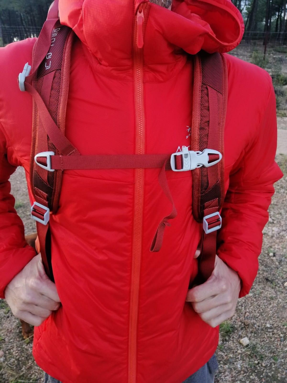 La Osprey Transporter 95 además se transforma en menos de un suspiro en una mochila razonablemente cómoda para llevar encima. Eso sí, es importante entender que no es una mochila de trekking, aunque como decimos no se lleva nada mal. También posee una cinta de ajuste de pecho (con silbato incluido ) que ayuda en el acople de la bolsa.