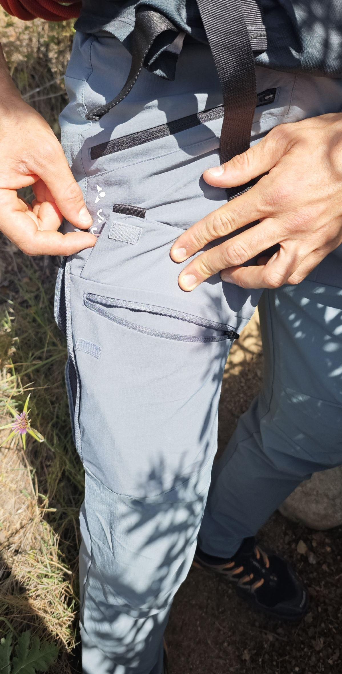 En este apartado no hay grandes alardes, pero sí cosas bien hechas. Por un lado, los bolsillos están bien colocados y se pueden usar con arnés sin problema, algo que en escalada se agradece. No quedan en zonas incómodas ni obligan a forzar posturas.