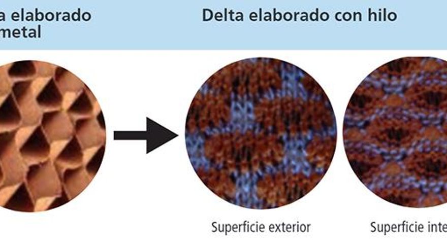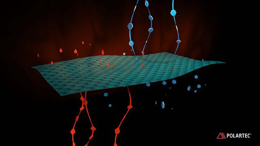 Pedimos a nuestros ingenieros de I+D que construyeran un tejido con refrigeración y que tuviera la capacidad de transferir el calor de un lugar a otro como un radiador. El sudor es la primera respuesta de nuestro cuerpo cuando aumenta la temperatura en entornos calurosos, así que inventamos un tejido que optimiza la eficacia de esta respuesta natural. Nuestro tejido-radiador transfiere el sudor cerca de la piel y así se consigue un efecto refrescante mediante a la evaporación del sudor, la eliminación del exceso de calor y el secado rápido.Nosotros creamos tejidos con hilos y no utilizamos piezas metálicas. Así que este tejido está compuesto de hilos hidrófobos (en blanco, en la imagen de arriba) siguiendo la estructura de un radiador lo que permite prolongar el frescor en la piel. Los hilos absorben la humedad y la distribuyen alrededor del tejido, consiguiendo el mismo efecto refrigerante que el radiador de un coche. El innovador Polartec® Delta™ reparte la humedad en todo el tejido para que la piel se beneficie del efecto refrescante de la evaporación. Las zonas hidrófobas (en naranja, en la imagen) están creadas con hilos sintéticos y con una estructura de punto especial para proporcionar la máxima transpirabilidad y un secado rápido.Esta estructura especial reduce el contacto del tejido con la piel. Al mismo tiempo, los hilos que lo componen poseen un tacto natural muy agradable por lo que dan ganas de ponérselo especialmente cuando hace calor. Además, el tejido reduce la aparición de los olores, manteniendo su frescor durante más tiempo entre lavados y protege de los rayos UV (protección UPF) durante largas exposiciones al sol.