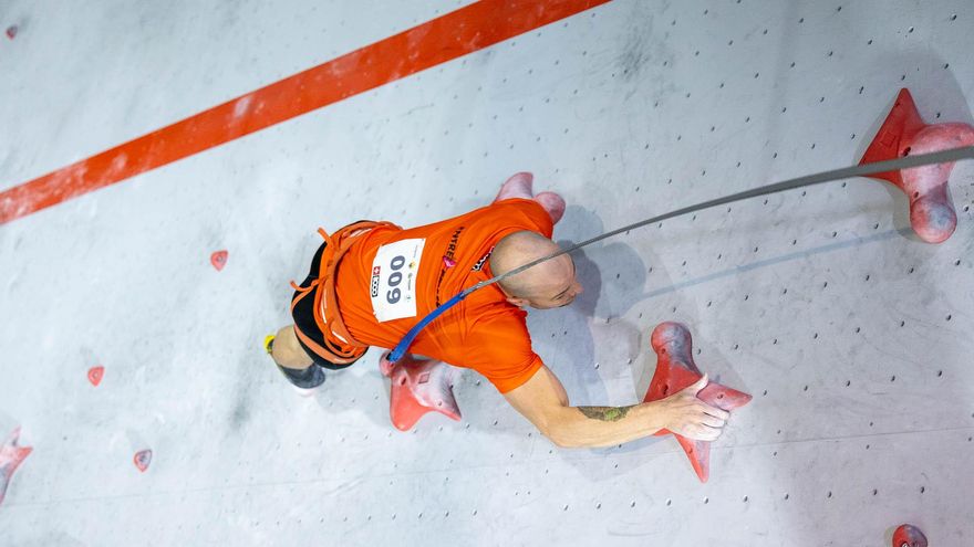 La categoría B2 (totalmente o casi totalmente ciego) ha abierto las finales del campeonato para los participantes en paraescalada. El silencio ha sido sepulcral en el rocódromo cuando los competidores han afrontado la vía de la final. Cabe recordar que un asistente, en este caso Víctor Esteller, seleccionador nacional de Paraescalada, es quien les ha dictado todos los movimientos a los atletas.