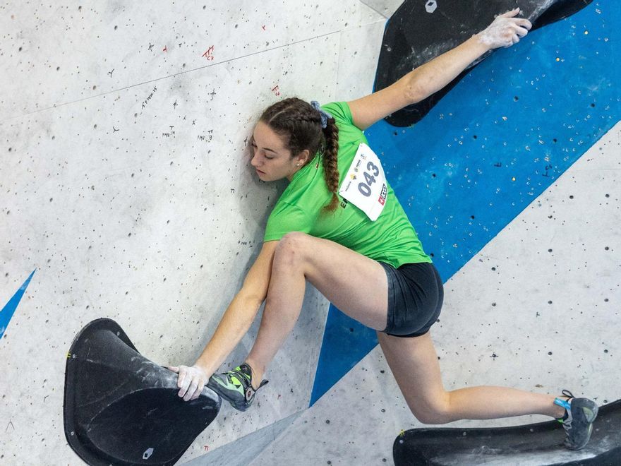 La más sólida entre las chicas ha sido la joven Iziar Martínez, que con tan solo 16 años ha plantado cara a competidoras mayores que ella, que cuentan con más experiencia en la categoría absoluta. Martínez ha flotado por el arco, leyendo a la perfección todas las secuencias y ahorrando el máximo de energía para la sección final de la vía, donde algunos de los agarres eran realmente pequeños. La escaladora de Valladolid ha sido la única que ha conseguido llegar al top y al pasar la cuerda por la cadena no ha podido esconder su emoción. El encadenamiento le ha valido a Iziar Martínez para proclamarse campeona de España de Dificultad.