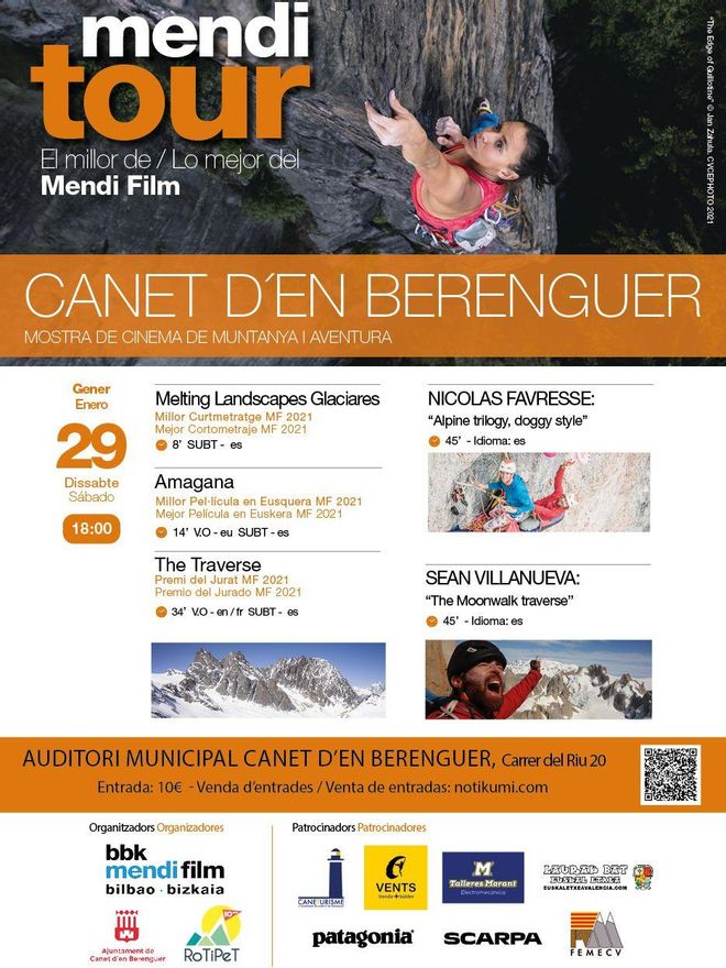 Dos de los mejores escaladores del mundo junto a la selección de películas del Mendi Tour otro año más en Canet d’En Berenguer