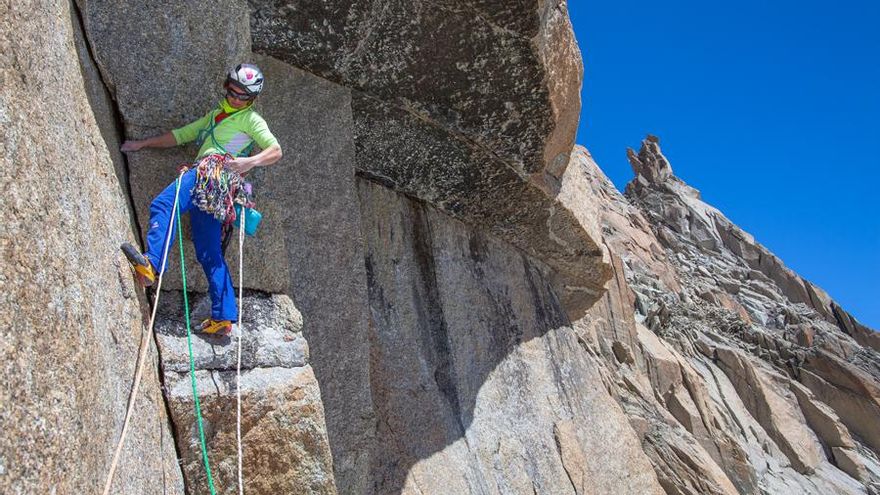 “He estado compitiendo durante diez años en torneos mundiales de escalada, me he subido al podium e incluso he ganado, pero hay todo un mundo entre ocho minutos de ejercicio en paredes artificiales y la escalada libre de una pared vertical de granito con caída a un glaciar. Cuando me propuse a mí misma esta ruta el año pasado, también planeé aprender ciertas técnicas que me faltaban para ello, desde avanzar sobre hielo con crampones, hasta escalar con los seguros bien alejados, sabiendo que si fallas las consecuencias pueden ser fatales”, subraya Caroline.