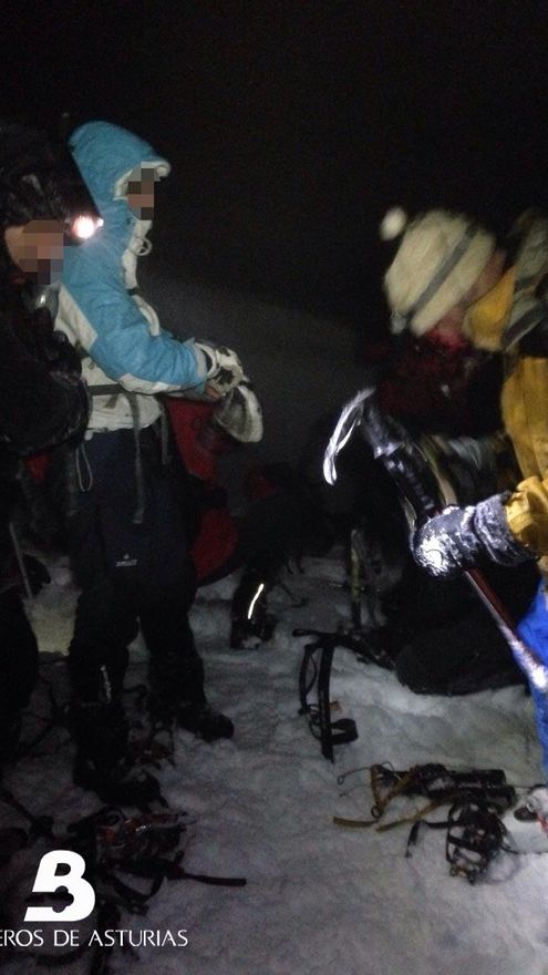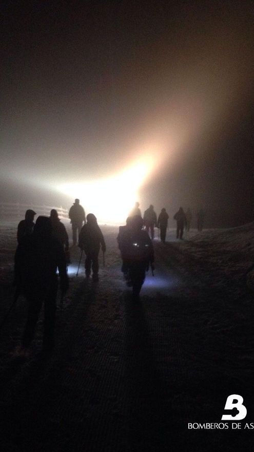 Desde el 112 ya habían movilizado a dos bomberos del SEPA e informado a la Guardia Civil que envió dos greim de Mieres y otros dos de Sabero. La persona que había caído llegó a la carretera AS-253, donde fue localizada por los rescatadores que les buscaban por Asturias. El resto del grupo fue localizado por los rescatadores del grupo de Sabero en el Cordal del Ajo a unos 40 minutos de la estación de Fuentes de Invierno.