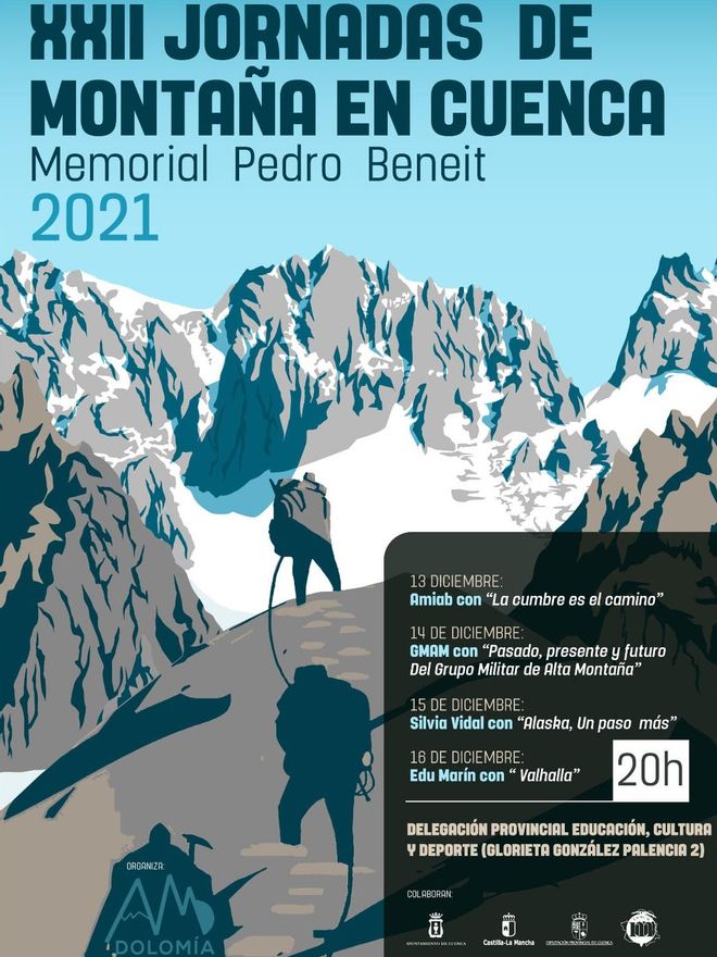 Después del parón por la Covid 19 regresan las Jornadas de Montaña “Memorial Pedro Beneit” organizadas por la Asociación de Montaña Dolomía con el patrocinio del Ayuntamiento de Cuenca y la colaboración de la Federación de Deportes de Montaña de Castilla la Mancha, Junta de Comunidades de Castilla la Mancha y Diputación Provincial de Cuenca.