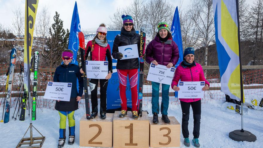 En categoría femenina la carrera ha sido muy disputada y las tres primeras esquiadoras han cruzado la línea de llegada separadas por menos de un minuto. La vencedora ha sido la esquiadora madrileña Fátima De Diego con un crono de 37 minutos. Clàudia Sabata, del Club Esquí Berguedà, ha sido segunda con un tiempo de 37’ 26“. Ha completado el podio Alba Xandri, de la Associació Esportiva Matxacuca, que ha superado la cronoescalada en 37 minutos y 54 segundos.