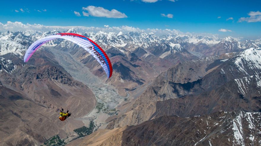 Volamos al corazón del Himalaya con los parapentistas Damien Lacaze y Antoine Girard para recorrer 1.500 km en vuelo-vivac por la cadena del Karakorum, posiblemente la más bella del mundo.