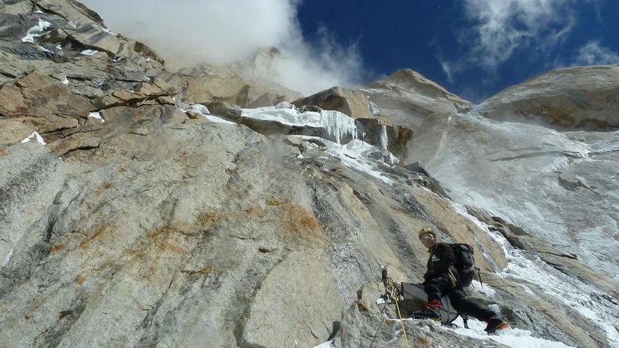 Apertura de una nueva vía (“2t” 1.100 m 6b, A3, M5) en la pared sur de la Torre sur del Paiju Peak (6.100 metros), Karakorum de Pakistán. Es la segunda ascensión a esta torre y la primera a esta pared.