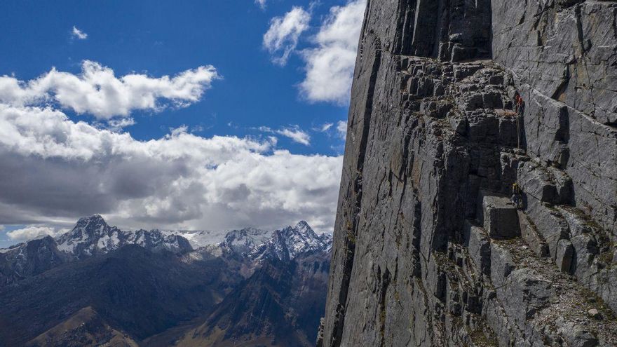 Después de las aperturas en el valle de San Marcos, y a pesar de los contratiempos de salud constantes en este viaje, los hermanos Pou, junto a su compañero Manu Ponce, se hacen con la segunda repetición de la cara oeste del pico Amahugaychu, de 5.134 metros, y primera ascensión en libre de la ruta Eder Sabino.