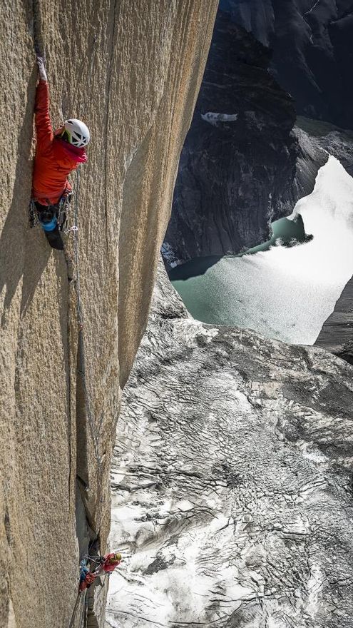 “Riders on the storm me obligó a dar el máximo. Sentía como si tuviese que juntar toda mi experiencia escalando, desde el búlder hasta grandes paredes, y unirlo a la poca experiencia como montañera que poseía para conseguir superarlo. Tuve que dar lo mejor de mí, tanto física como mentalmente”, cuenta Mayan Smith-Gobat. “Finalmente lograr alcanzar el punto más alto fue como un sueño hecho realidad. Después de vivir colgando de la pared, únicamente viendo el mismo lado de la montaña durante semanas, fue increíble llegar a la cima. Una vez allí no había una sola nube y teníamos una impresionante vista de la Patagonia extendiéndose bajo nosotras. Montañas, paredes de piedra que todavía nadie había escalado, glaciares y lagos hasta donde la vista alcanzaba”.