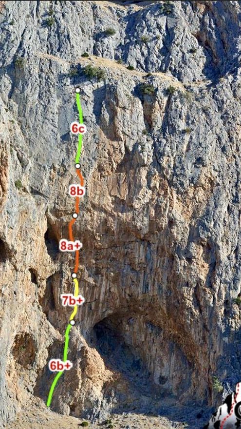 Es un proyecto abierto para todos los escaladores que se animen a probarla. Será una de las rutas de pared más duras de Andalucía en cuanto a dificultad en libre, posiblemente algo más dura de 8b, aunque eso no se sabrá hasta su liberación. Es una escalada increíblemente desplomada con pasos a bloque y chorreras en el L3, y el L4 es una placa brutalmente técnica con tres secciones a bloque, pero muy mantenida entre las secciones. La vía esta bien protegida.