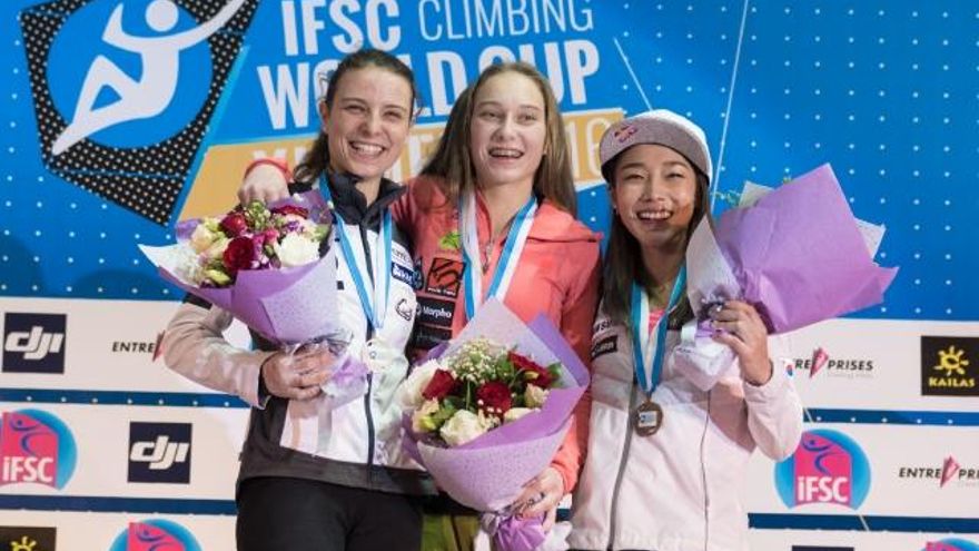 La penúltima cita de la Copa del Mundo de Escalada se ha celebrado este fin de semana en la localidad china de Xiamen. Un evento que tuvo lugar al aire libre con un ambiente muy caluroso y húmedo lo que complico, en algunos tramos de la competición, ciertos pasos en las vía propuestas para la ocasión. La japonesa Akiyo Noguchi se puso al frente pronto al quedarse muy cerca de hacer Top, pero las tres últimas participantes la superaron. Tanto la coreana Jain Kim como la belga Anak Verhoeven llegaron hasta la penúltima presa donde cayeron, lo que hacia que su puesto se decidiese según los resultados obtenidos en las semifinales. Finalmente sería la eslovena de 17 años Janja Garnbret quien alcanzaría el Top y sumaba así su cuarta victoria esta temporada. Un primer puesto que la otorga el título de campeona de la Copa del Mundo de Dificultad 2016, tan solo unas semanas después de haber logrado también el triunfo en los Campeonatos del Mundo de Dificultad celebrados en Paris. .