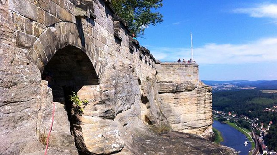 Atención: continuar escalando y superar el muro de la fortaleza de Königstein, monumento protegido, está prohibido.