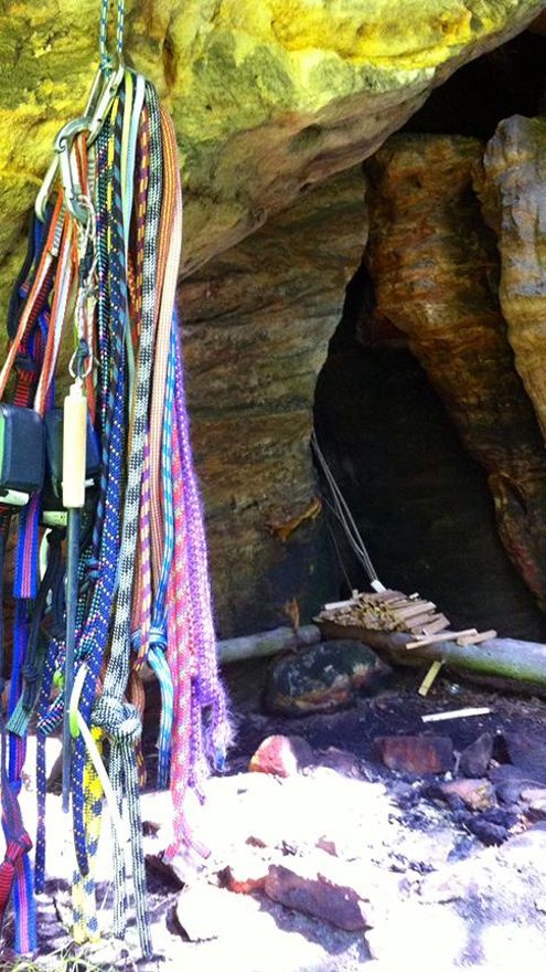 Con los escaladores se tiene más tolerancia ya que la escalada es una tradición anterior a la presencia del Parque Natural, y se respeta su costumbre de dormir en las cuevas. El fuego está prohibido en la mayoría. Justo debajo del Camino de Patrulla que da acceso a la chimenea, en el bosque, subiendo desde Königstein, encontraréis una buena cueva.