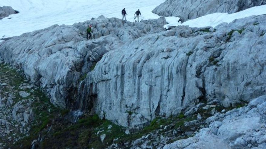 No son tres recorridos. Se trata de poder establecer tres circuitos para facilitar al montañero el conocimiento de la zona. Picos de Europa es un rompepiernas, todo son desniveles abruptos. Si no miras las curvas de nivel en el mapa y te guías sólo por los kilómetros no llegas a ninguna parte. Hay canales, como la Canal de Trea, que sólo son 1.000 metros de espacio recorrido pero con un desnivel de 1.200 metros. Mucha gente no aguanta estos desniveles. Picos es alpinismo a un nivel alto. Además, Picos está muy cerca del mar, los cambios de tiempo son muy rápidos y la entrada de la niebla, un factor muy importante a tener en cuenta. Es muy difícil tener una semana seguida de buen tiempo en Picos de Europa.
