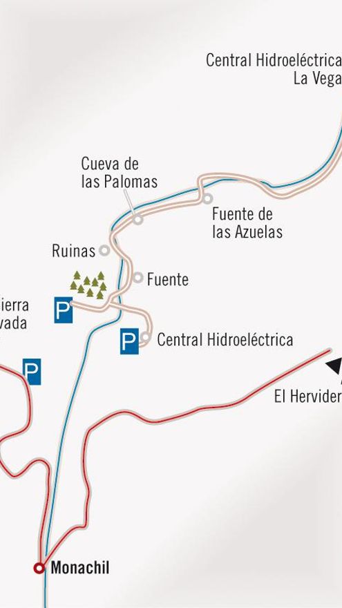 Para empezar nuestra caminata, y una vez llegados a Monachil, seguiremos las indicaciones que nos llevan a Los Cahorros. En el caso de que hayamos venido en vehículo, lo podemos dejar al final del carril de tierra, aunque si vas durante algún fin de semana de primavera o verano, lo mejor es dejarlo en la Era de Portachuelas, que se trata de una explanada situada unos cien metros más arriba de bar Puntarrón.