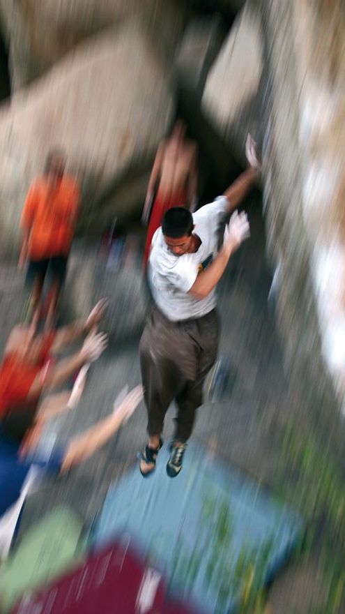 A mi modo de entender, el búlder es un juego de confianza. Tienes que confiar en ti, confiar en el lugar que te rodea y confiar en tus compañeros que te están protegiendo de los peligros de la caída. Esto hace que te dejes llevar por lo que estás haciendo sin pensar en otra cosa y así recibir el regalo de encadenar una secuencia de movimientos en total armonía hasta llegar a lo más alto del bloque. Si no confías en ti, o en tus compañeros, aparecerán las voces internas de cada uno, que intentan convencerte de que no puedes, de que tus compañeros no te van a proteger en caso de caída, o de que la salida del bloque está demasiado alta. Entonces empezarás a hacer más caso a los miedos que a intentar escalar el bloque, lo que te impedirá concentrarte en lo que estás haciendo de manera que te será imposible encadenar y asimilar el bloque.