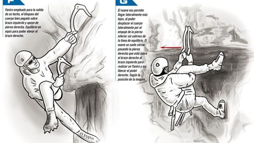 Éstos son algunos de los movimientos básicos que necesitaremos para poder progresar en vías de mixto, aunque debemos tener en cuenta que el incesante avance de los escaladores y entrenamientos, así como la posibilidad de entrenar ahora en rocódromos, y la transferencia de la escalada deportiva a la gestualidad de la escalada en hielo, están produciendo verdaderos mutantes y acróbatas…