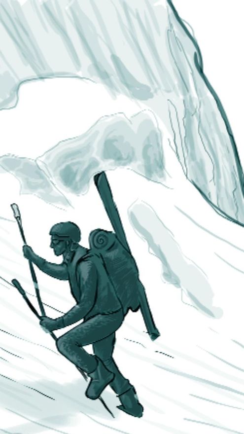 En pendientes muy pronunciadas, donde progresar con los esquís es demasiado difícil, lo mejor es colocar éstos en la mochila, de manera que no nos molesten al caminar o girar. Éstos no se deben mover para evitar posibles desequilibrios durante la marcha o que nos puedan golpear. En este tipo de pendientes es imprescindible llevar un piolet a mano ya que en caso de caída es lo único que nos parará, y si la nieve está muy dura o hay placas de hielo utilizaremos los crampones para el avance con seguridad. Esto es algo muy común cuando cambiamos de laderas donde no da el sol o los días son muy fríos, por lo que la planificación del recorrido de la ruta es muy importante.