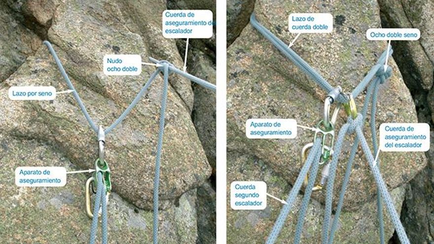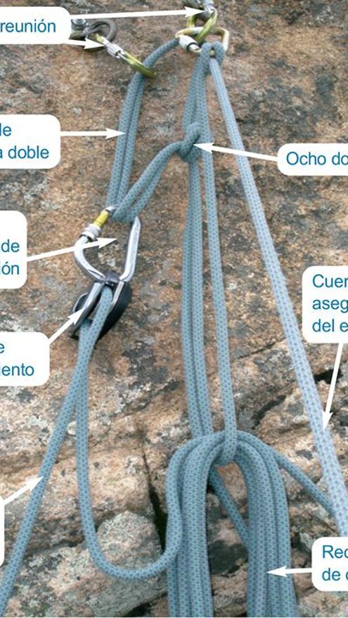 Reunión con mosquetón de seguridad y nudo dinámico para casos de emergencia