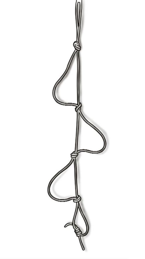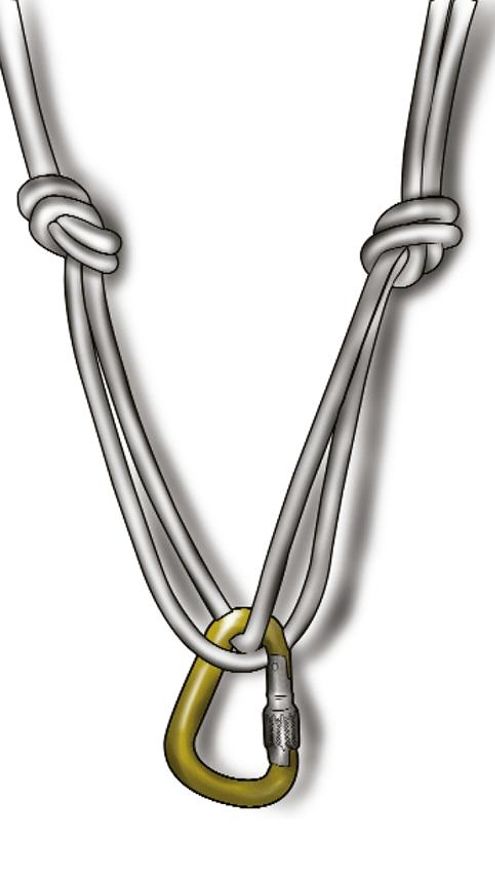 No hay que olvidar también que al emplear cinco metros de cordino para las reuniones éste nos puede servir para hacer un estribo improvisado para algún paso en caso de necesidad o poder abandonar para rapelar si se da la situación (Puentes de roca o hielo, lazar un bloque, triangular en unos clavos, etc.).