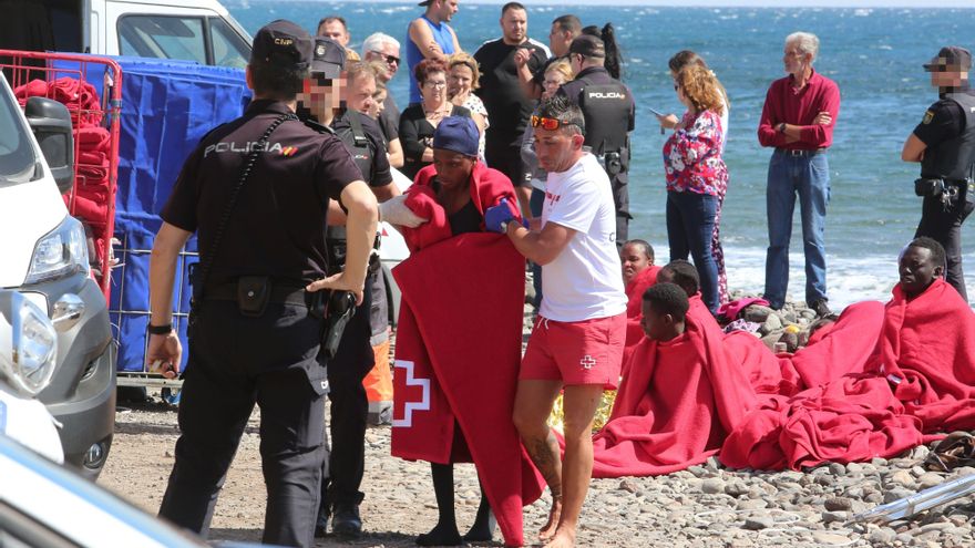 Una patera que partió el lunes desde la costa de Dajla, en el Sáhara Occidental, ha llegado en la tarde de este jueves tras cuatro días de travesía en muy malas condiciones de mar a una playa del sur de Gran Canaria con un fallecido y 34 supervivientes a bordo, entre ellos seis bebés.