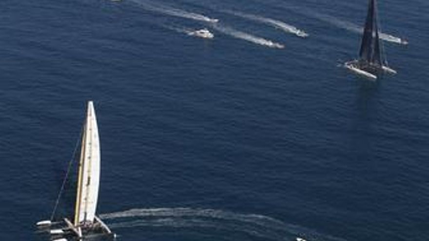 El desafiante de la 33 America's Cup, el BMW Oracle, voló en la primera regata del duelo contra el defensor, el Alinghi, gracias al 'ala' que ha montado en su trimarán como vela mayor rígida, y que le hizo ganar con una ventaja humillante de algo más de diez minutos.