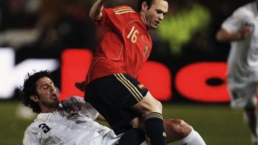 La abulia de los visitantes tuvo pronto su castigo. En el cinco Criscito avisaba a Casillas con un durísimo disparo desde fuera del área que se estrellaba en el palo de la puerta del meta mostoleño. Seis minutos después, Montolivo confirmaría la amenaza 'azurra' aprovechando un desajuste de la zaga ibérica para batir por alto al capitán español y poner el 1-0.