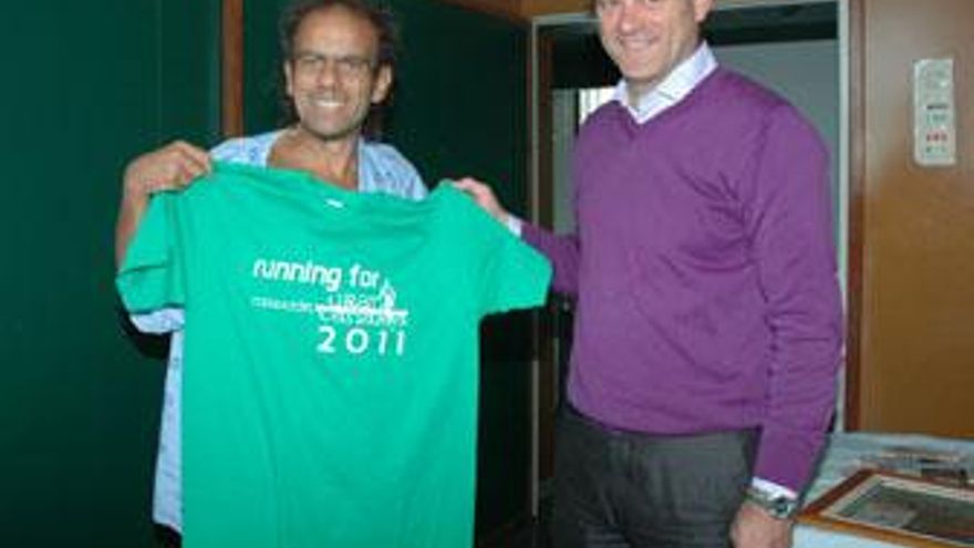 El consejero de Deportes del Cabildo de Gran Canaria, Óscar Hernández, entregó este jueves una camiseta para intervenir en la edición del maratón insular 2011 al atleta italiano Paolo Giammaria, quien sufrió una parada cardiorrespiratoria en la disputa del reciente, de la que está en fase de recuperación.