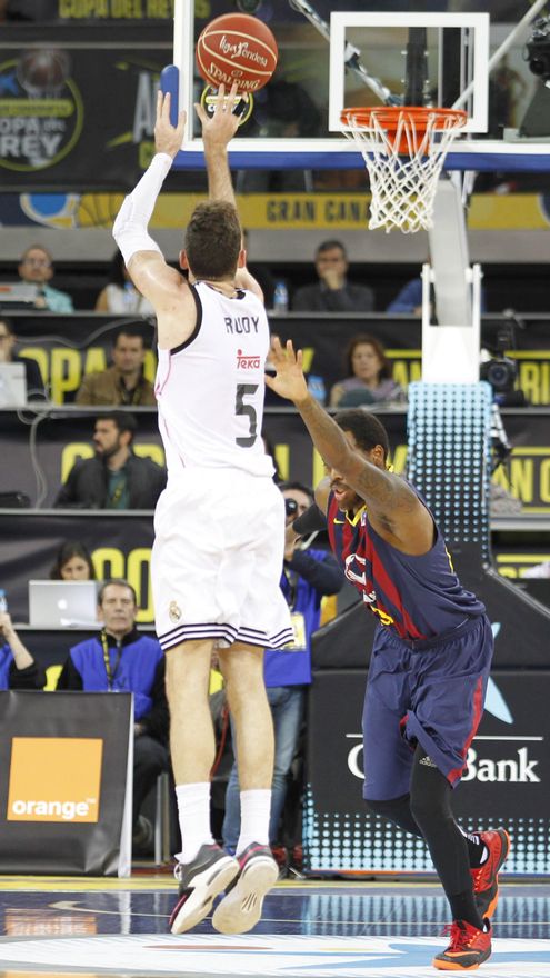 El Real Madrid se ha proclamado campeón de la Copa del Rey de baloncesto por 25ª vez al vencer al Fútbol Club Barcelona por 71-77 en un igualadísimo encuentro en el que el equipo de Pascual aguantó por delante mientras Tomic, el mejor jugador del partido con 25 puntos y 11 rebotes (40 de valoración, récord en una final superando los 39 de Pau Gasol en 2001) estuvo dominando la zona, pero cuando los de Laso lograron sacar el juego de la pintura pudieron darle la vuelta al partido merced a un gran Rudy Fernández, MVP del torneo por tercera vez en su carrera, que anotó 16 puntos, capturó cuatro rebotes y repartió cinco asistencias (26 de valoración), respaldado por Sergio Rodríguez, que apareció en los momentos decisivos del encuentro, primero para darle la vuelta al marcador y después para sellar la victoria blanca.