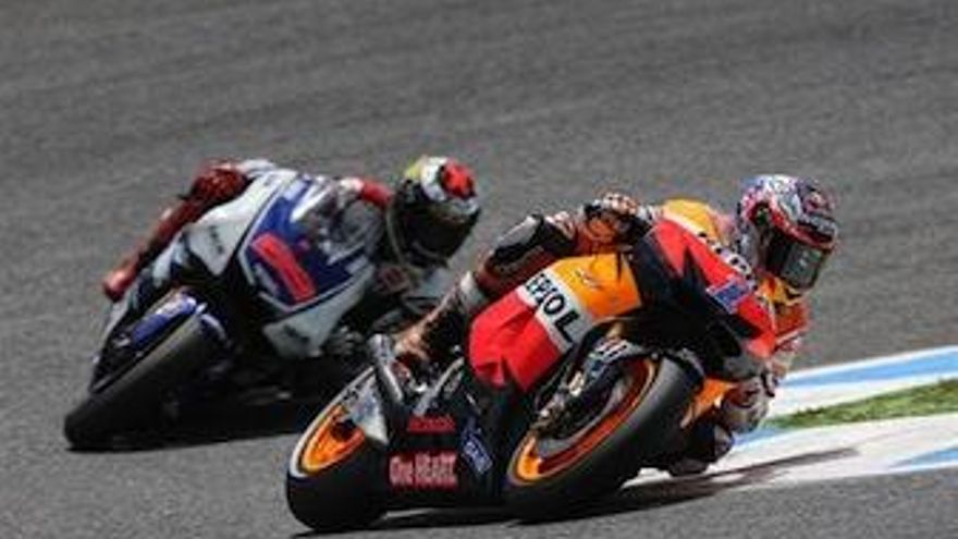 Por otra parte, los pilotos de Ducati Hayden y Rossi acabaron noveno y décimo, respectivamente. En la última vuelta, Álvaro Bautista (Honda) se cayó de su moto y tuvo que conformarse con el octavo puesto, en la tercera línea de parrilla.