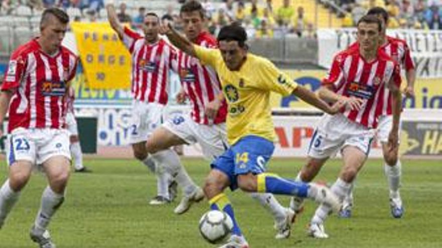 La derrota ante el Girona FC (0-1), combinada con los resultados de los otros conjuntos metidos en la pelea por no descender a Segunda B, resultó fatal para los intereses de la Unión Deportiva Las Palmas. A dos jornadas para el cierre del curso en la Liga Adelante, en las que se tendrá que enfrentar a dos rivales directos (Real Murcia y Nàstic de Tarragona) por la permanencia, el equipo de Paco Jémez está a tan sólo dos puntos de la zona de descenso.