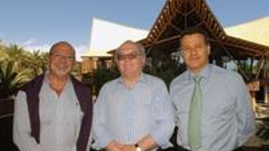 Basta con que unos cuantos cerebros privilegiados se pongan a pensar en positivo para que enseguida podamos encontrar recetas con las que salir de la crisis. En esa tarea, en la de huir del pesimismo y del dramatismo en muchas ocasiones interesado se encuentran algunas personalidades de las más variadas tendencias políticas o actividades profesionales, como el ex ministro de Defensa Eduardo Serra o el empresario grancanario Ángel Ferrera. El primero, presidente de la Fundación Everis y el segundo, de la Fundación Canaria Bravo Murillo, recorrieron este viernes las instalaciones de Lopesan Hotel Group en Meloneras (los hoteles Lopesan Costa Meloneras, Villa del Conde y Baobab Resort, así como el palacio de congresos Expomeloneras). Serra se encuentra en Canarias para presentar “Transforma España”, un documento en el que un centenar de expertos ofrecen salidas a la crisis. Ambos emprendedores se reunieron con el presidente del Grupo Lopesan, Eustasio López.