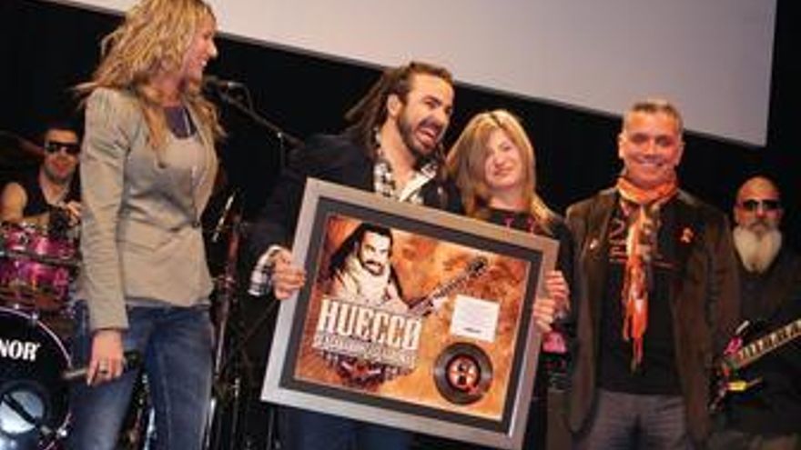 La Ministra de Igualdad, Bibiana Aído, junto al gran amigo de Huecco, Juan Ramón Lucas, y las la presentadoras Anne Igartiburu y Susanna Griso hicieron entrega del galardón, en la sala Joy Eslava de Madrid. Justo después, el artista dio comienzo al concierto no sin antes reiterar su intención de seguir combatiendo la violencia de género.