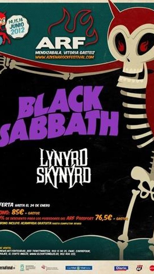 El Azkena Rock Festival 2012, que se celebrará en Vitoria del 14 al 16 de junio, arranca de manera fulgurante con la confirmación de Black Sabbath y Lynyrd Skynyrd, dos bandas que se escriben con letra mayúscula en la historia del Rock & Roll y que serán, obviamente, dos de los cabezas de cartel de su decimoprimera edición.