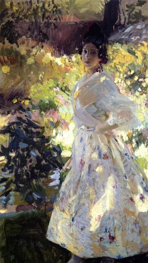 'María vestida de labradora valenciana', realizado en 1906, es uno de los retratos más extraordinarios y audaces del pintor realizado en el exterior. María aparece vestida con el traje típico de las labradoras valencianas y situada debajo de un árbol, en penumbra, otorgando así el protagonismo a la frondosa y sugerente vegetación iluminada por el sol.