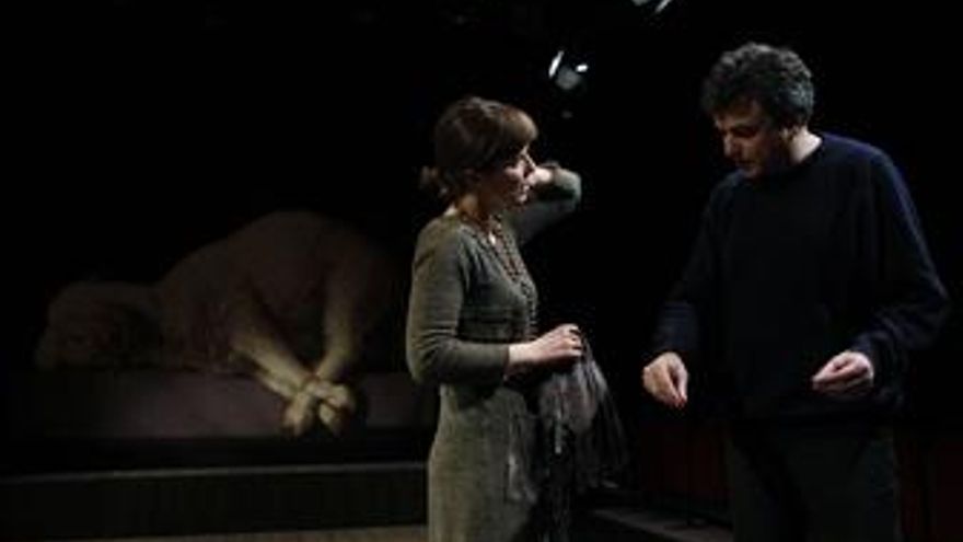 La puesta en escena se ha realizado desde la “sencillez más absoluta”. “El espacio es un corredor con una bancada, un lugar de tránsito”. “Además no está montado a la italiana sino a dos bandas. Y preside el 'Agnus Dei' de Zurbarán”, explica Caballero.