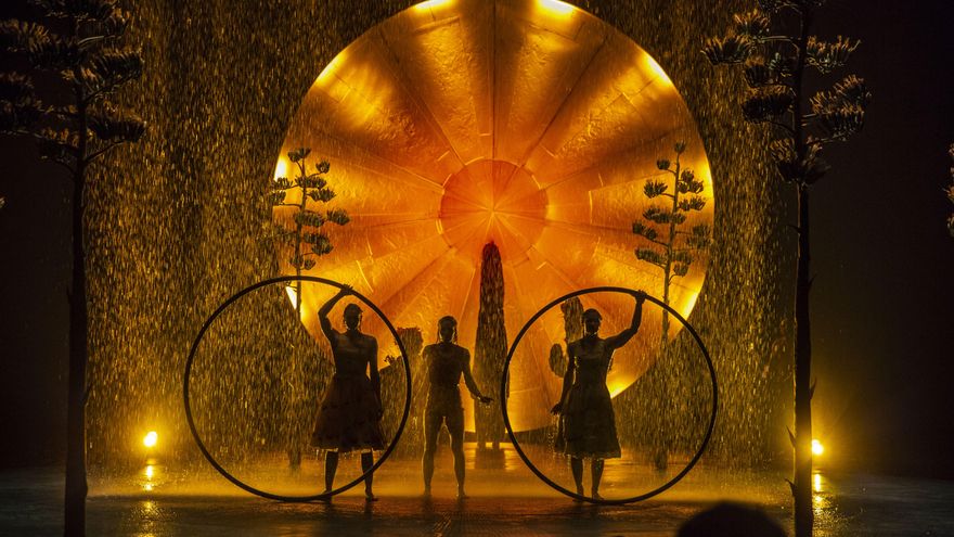 Un campo de 5.000 flores de cempasúchil en tonos anaranjados, especies que guardan grandes lazos con México y la muerte, adorna la primera escena del imponente escenario en el que se desarrolla la trama de Luzia, el espectáculo del Circo del Sol que emplea el agua (principalmente en forma de lluvia) y la luz como elementos protagonistas de la creación. En ese campo de flores aterriza un viajero después de que se escuche el fuerte sonido de un avión. En realidad, es el aviso de que el espectador se adentra desde ese momento en un viaje en el que le esperan un sinfín de sorpresas. El Royal Albert Hall, en Londres, está siendo testigo estas semanas de la belleza y armonía que se funden en esta oda acrobática de la que se podrá disfrutar este verano en Gran Canaria.
