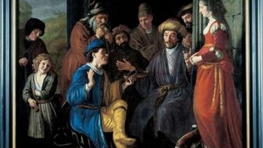 La obra 'Booz recibe la herencia de Elimelec', de Jan Victors, que forma parte de la muestra La Edad de Oro de la pintura holandesa y flamenca del Städel Museum que se expone actualmente en el Museo Guggenheim Bilbao, ha resultado dañada intencionadamente este viernes por un visitante, un estudiante de Bellas Artes.