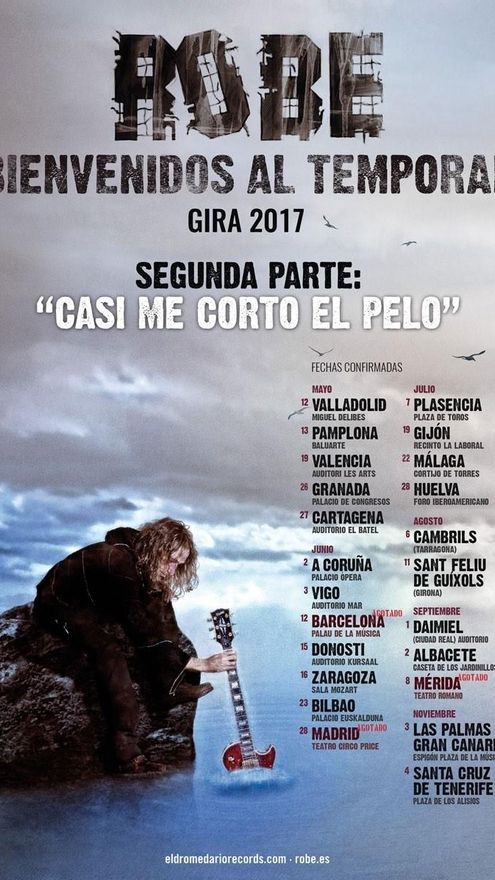 Después de anunciar las fechas y ciudades de Ponte a cubierto, la primera parte de la gira Bienvenidos al temporal, que tendrá lugar en teatros y auditorios, Robe confirma ahora las actuaciones del segundo tramo de conciertos para presentar su segundo disco al margen de Extremoduro.